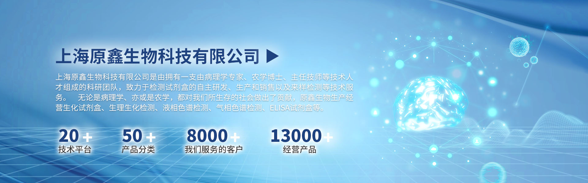上海原鑫生物科技有限公司是由擁有一支由病理學專家、農學博士、主任技師等技術人才組成的科研團隊,致力于檢測試劑盒的自主研發、生產和銷售以及來樣檢測等技術服務。 無論是病理學、亦或是農學,都對我們所生存的社會做出了貢獻,原鑫生物生產經營生化試劑盒、生理生化檢測、液相色譜檢測、氣相色譜檢測、elisa試劑盒等。 其中受市場歡迎的產品,便是elisa試劑盒。試劑盒也分為各式各樣的,不同企業所生產制造而出的效果也是不同的, 選擇-款好的試劑盒,對相關的科研發展是及其重要的。